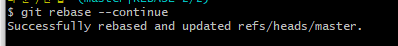 이제 rebase를 완료 해도 되니 --continue옵션을 통해 rebase 를 끝내주겠습니다!!